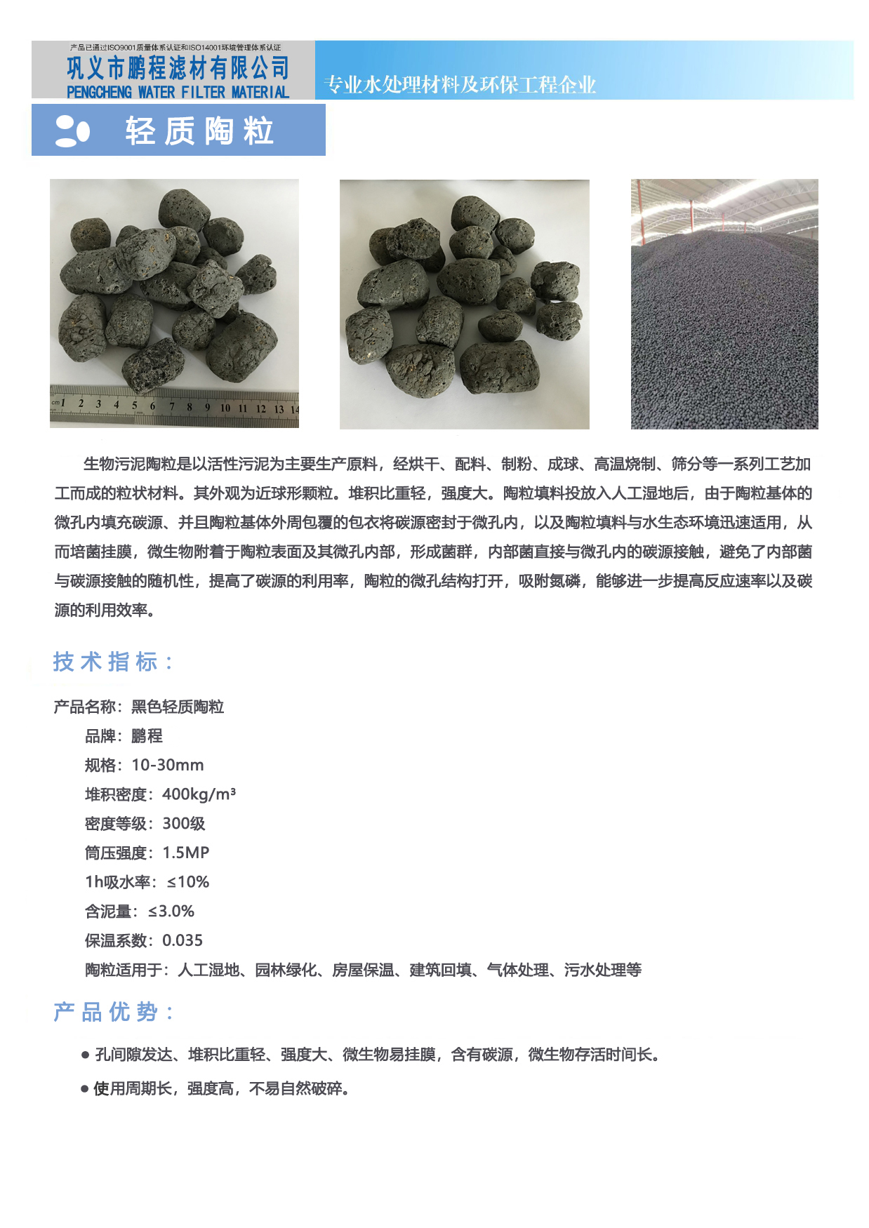 鞏義市鵬程濾材有限公司一家水過濾濾料 ——陶粒濾料生產廠家,鵬程濾材陶粒濾料有黏土陶粒 生物陶粒 頁巖陶粒還有絢麗多彩的養(yǎng)殖花卉陶粒濾料。根據使用環(huán)境不同,陶粒產品齊全廠家歡迎您咨詢。