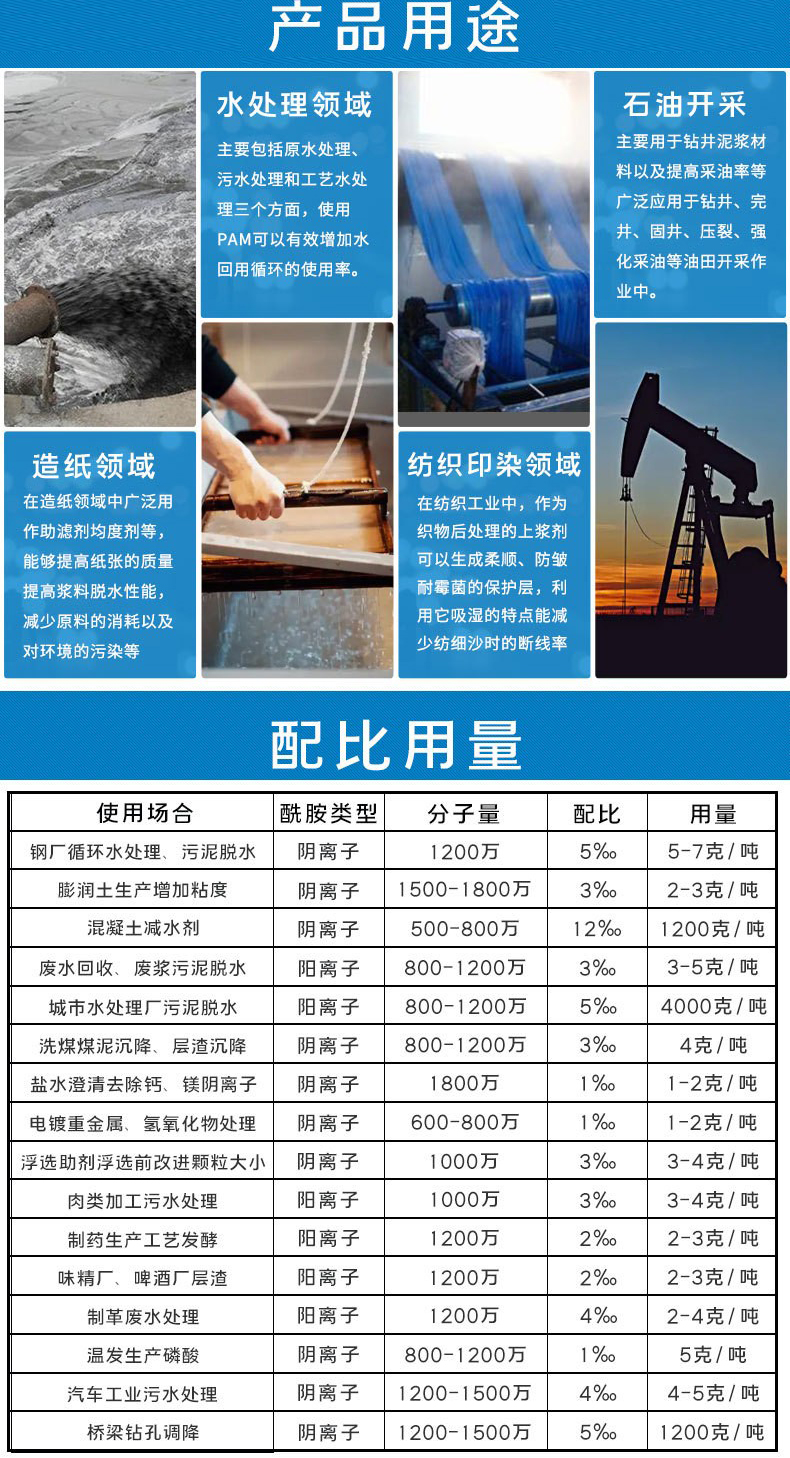 陽離子聚丙烯酰胺通過交聯(lián)吸附的網(wǎng)狀結(jié)構(gòu),作為了一類重要的絮凝劑 增稠劑 減阻劑 泥漿處理劑 表面活性劑 土壤改良劑,水土保濕劑 造紙 印染紡織增強劑等;在石油開采 水處理 紡織造紙 選礦 醫(yī)藥等行業(yè)中廣泛用到。所以被稱之為 百業(yè)助劑。